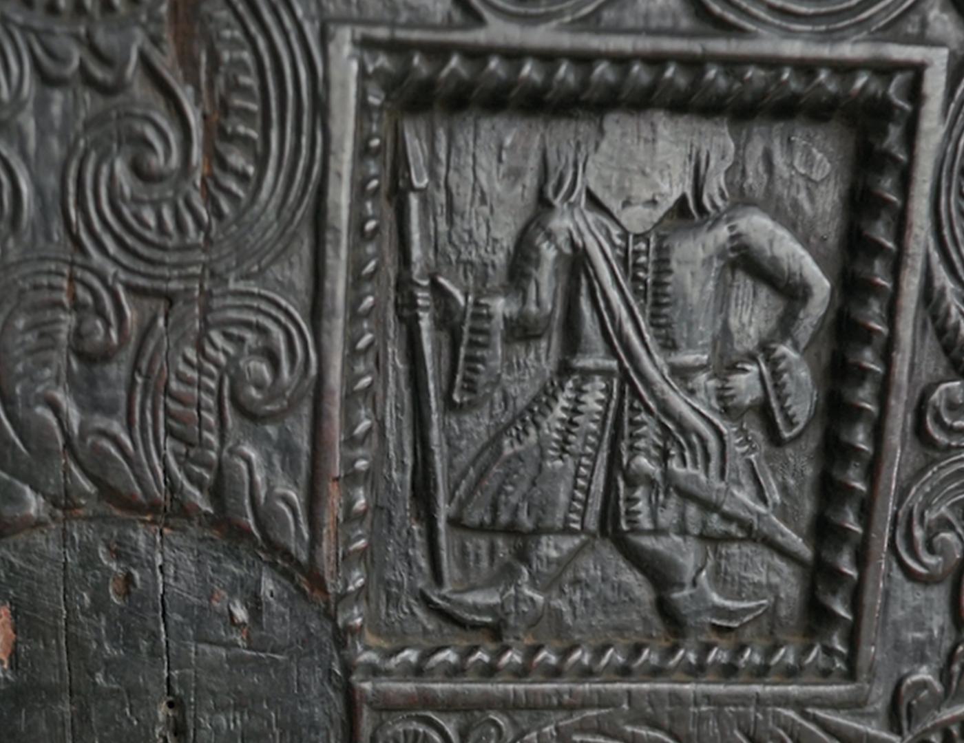 Menarik untuk dicatat bahwa kepala semua figur manusia telah dikikis oleh pemilik sebelumnya di Batavia sebelum kabinet ini menjadi bagian dari koleksi museum.