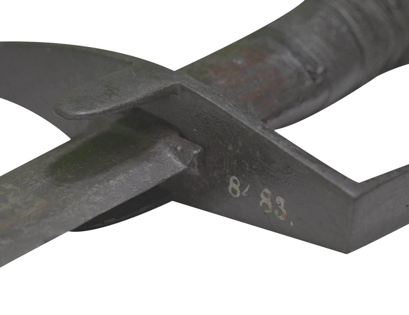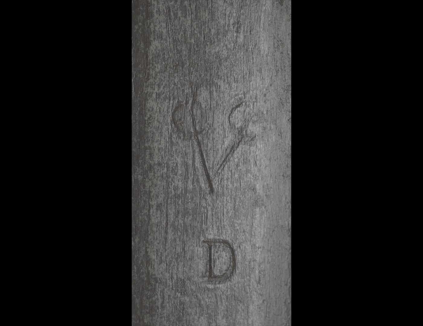 Ukiran lambang VOC dan huruf "D" (Delft) terlihat di kedua sisi bilah, menunjukkan keterkaitannya dengan kota Delft, salah satu dari enam Kamar VOC yang terletak di kota-kota pelabuhan utama Belanda.