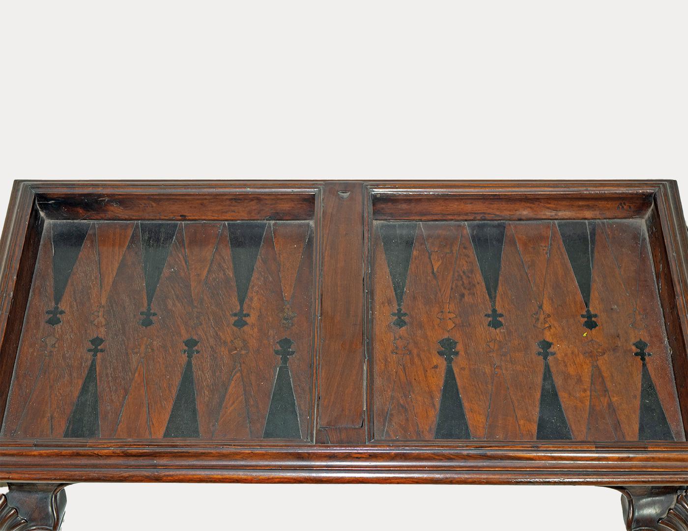 Aturan permainan Tric-Trac mirip dengan permainan backgammon, menggunakan dadu, kepingan bulat yang digerakkan di sekitar bentuk segitiga di meja, dan sebuah bendera kecil yang disebut "pavilion." Kepingan permainan disimpan di dalam laci kayu di bawah meja.