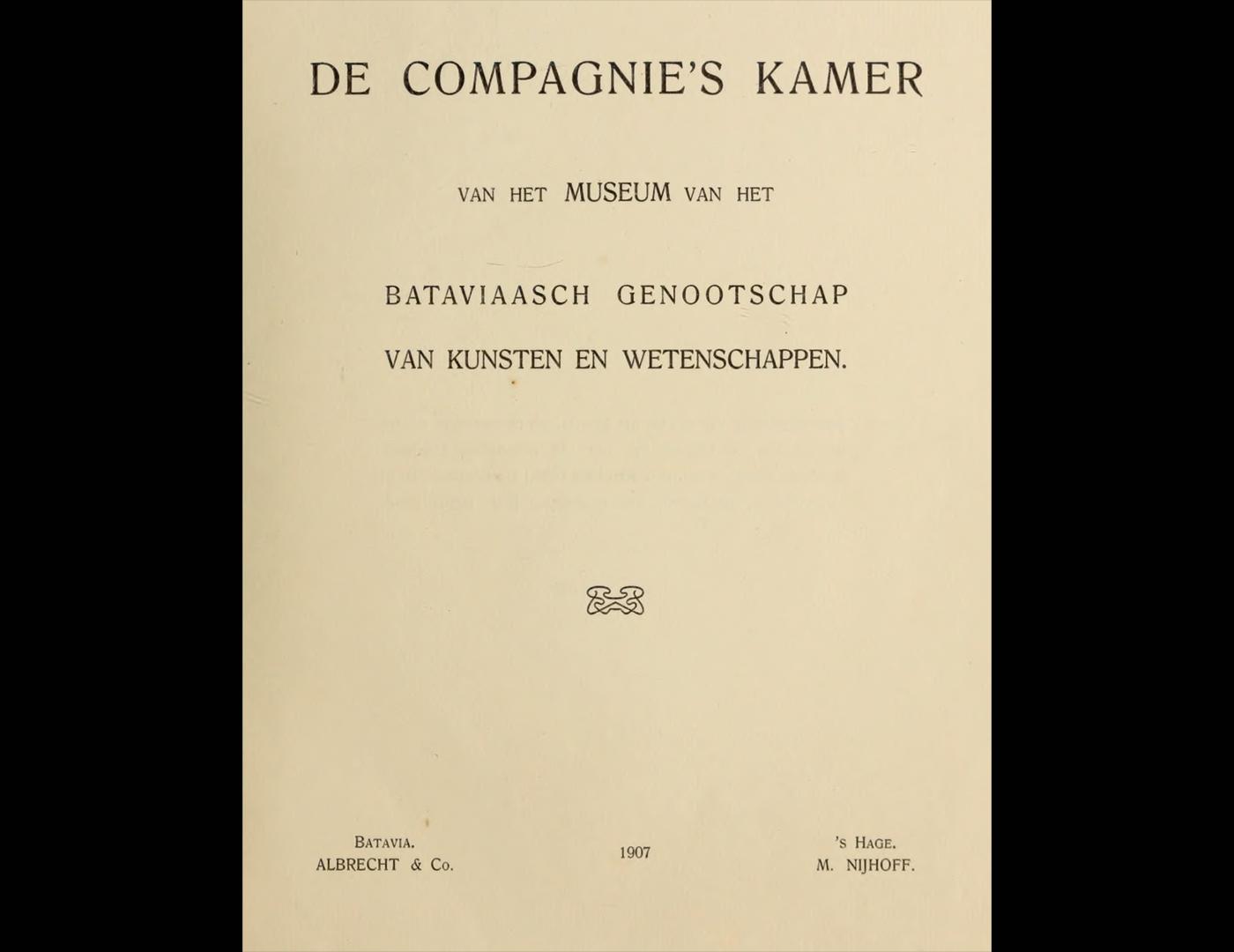 Katalog "De Compagnie's Kamer" (Ruang VOC) diterbitkan pada tahun 1907 sebagai buku panduan untuk ruang pameran yang baru dibuka di Museum Ikatan Kesenian dan Ilmu Batavia.